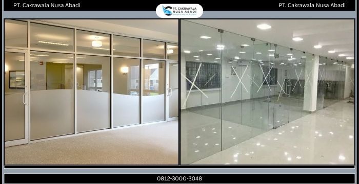 Selain itu, tersedia juga sekat GRC yang memiliki daya tahan tinggi terhadap kelembaban dan cocok untuk berbagai kondisi ruangan. Bagi Anda yang menginginkan tampilan lebih modern, sekat kaca bisa menjadi pilihan tepat karena memberikan kesan luas dan elegan.